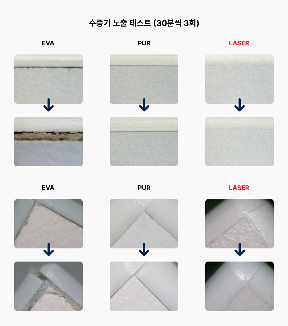 레이저 접합 기술은 미세한 틈도 남기지 않으므로 습기가 스며들지 않아 내습성이 뛰어납니다.